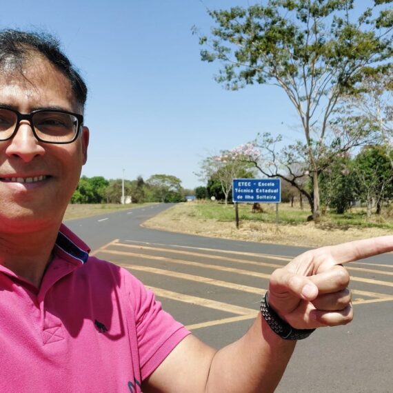 Visão externa da Fatec Ilha Solteira (Entrada do Campus e estacionamento)